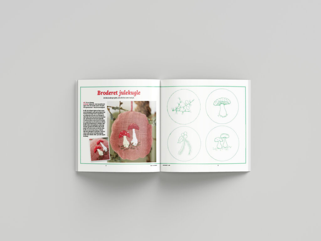 Hjemmet skulle have designet deres årlige julebog med madopskrifter og håndarbejde. Jeg har designet den efter Hjemmets genkendelige stil.