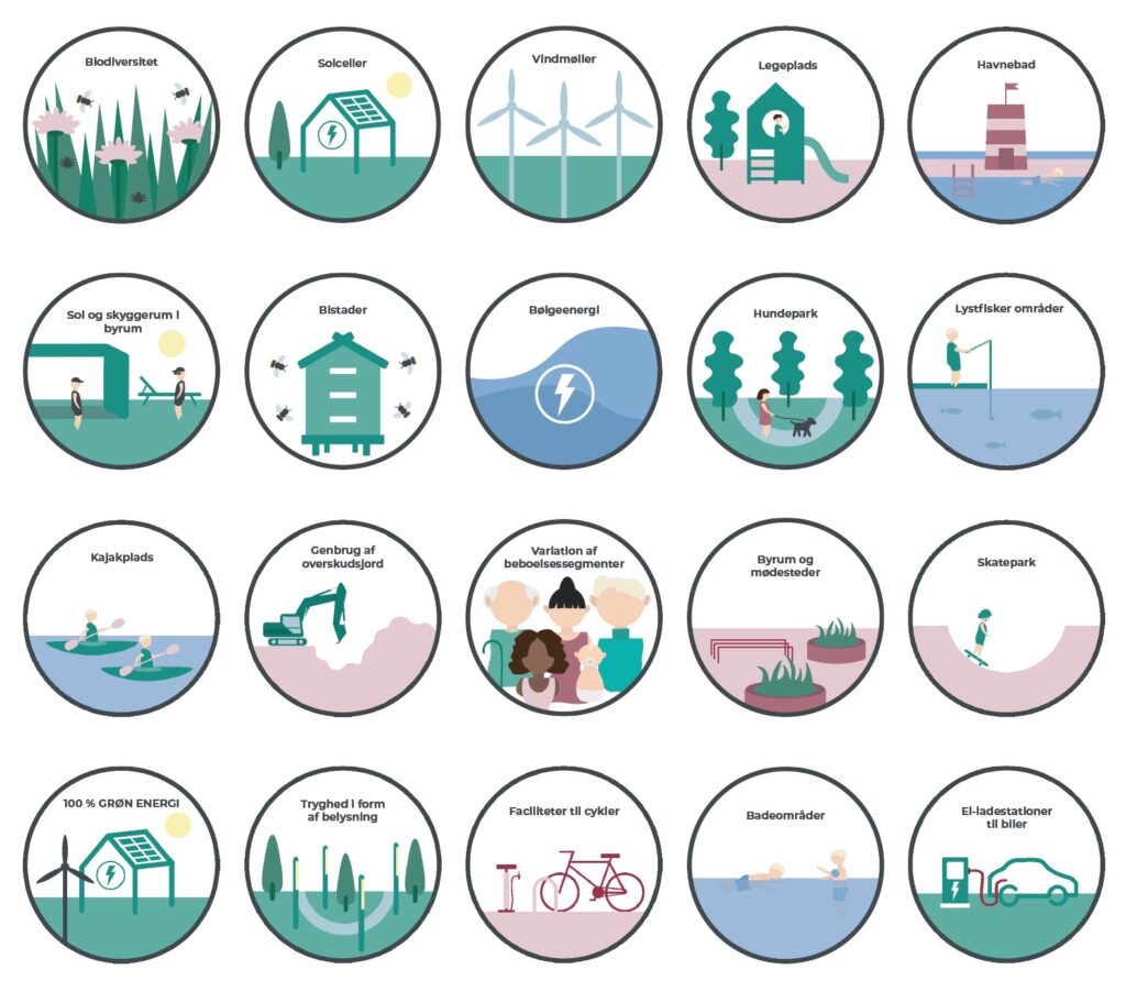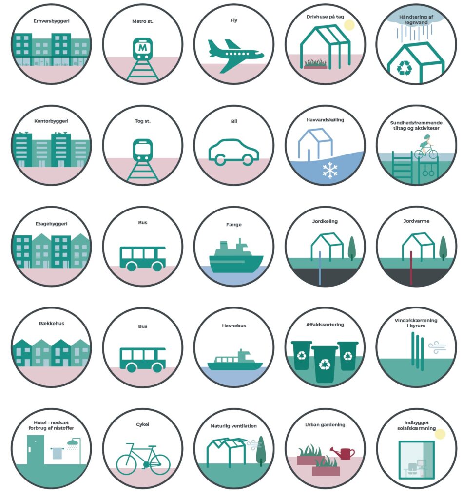 Jeg skulle til Danielsen Architecture, lave bæredygtigheds piktogrammer, der illustrerede en række forskellige funktioner og kvaliteter en bygning kan have. Piktogrammerne kan fx bruges til når der skal forklares en proces på en simpel måde der fanger blikket.