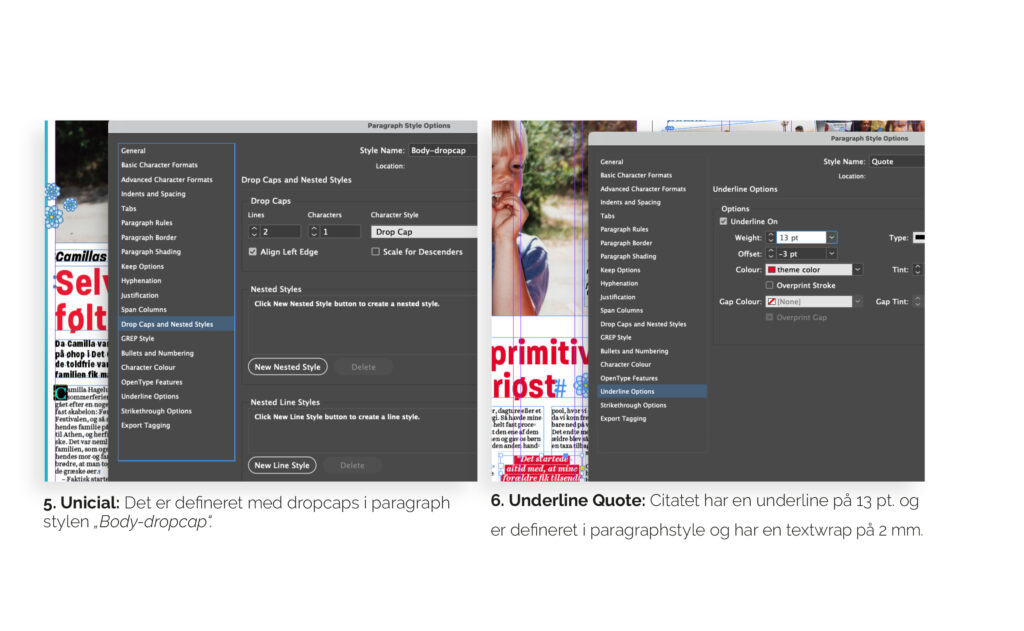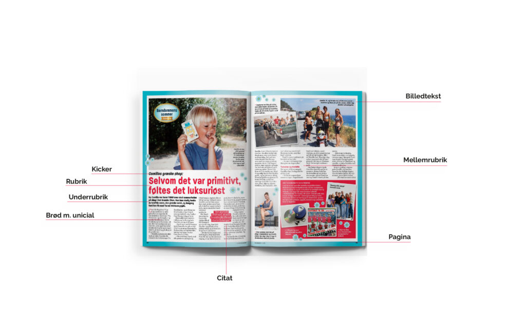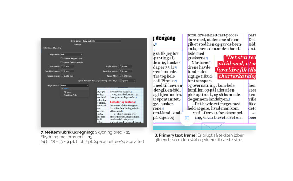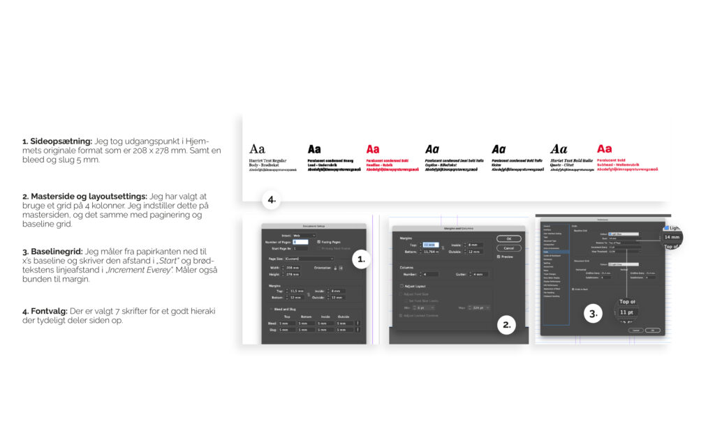 Kernefagligheden typografi tager udgangspunkt i en artikel fra Hjemmet. Min version er anderledes end det originale blad, da jeg vil vise flere ting end de faste regler hos Hjemmet. Det er her bl.a. fokus på indstilling af baseline-grid og udregning af mellemrubrik.